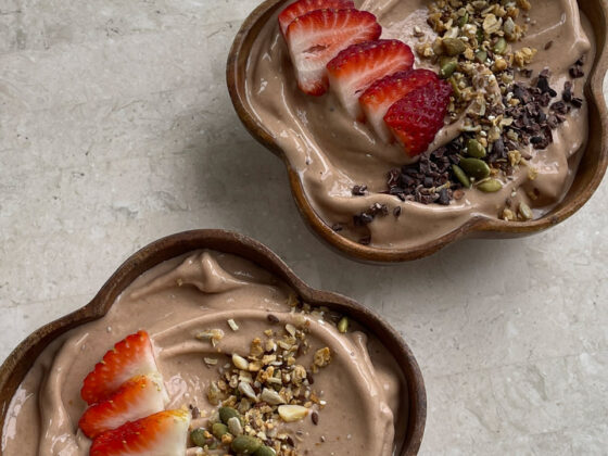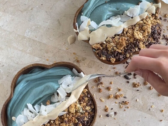 If you want your smoothie bowl to not melt as fast, try use a plastic or wooden style bowl, or place it in the freezer just before making the smoothie.