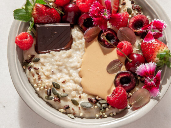 9. Mix together coconut yoghurt and mashed raspberries until the desired colour